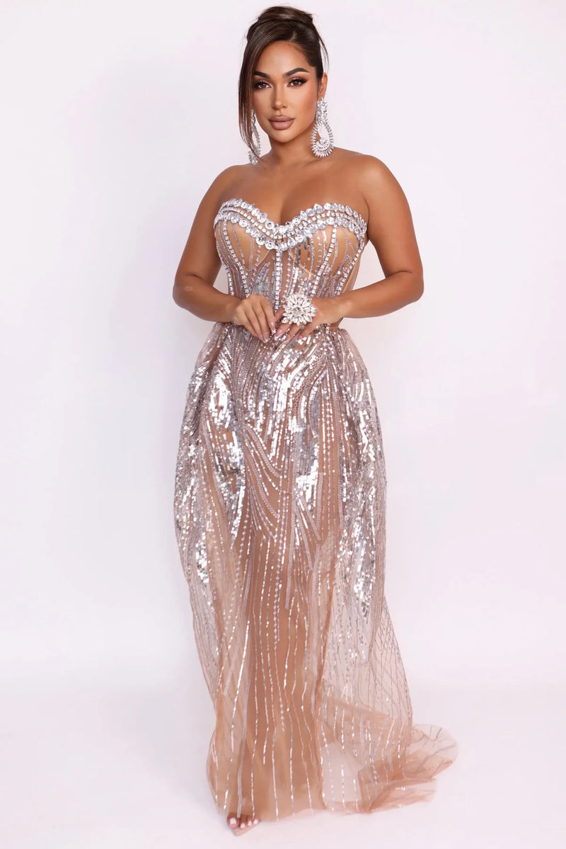 Sexy Slanted Collar Silver Tassel Bandage Dress
