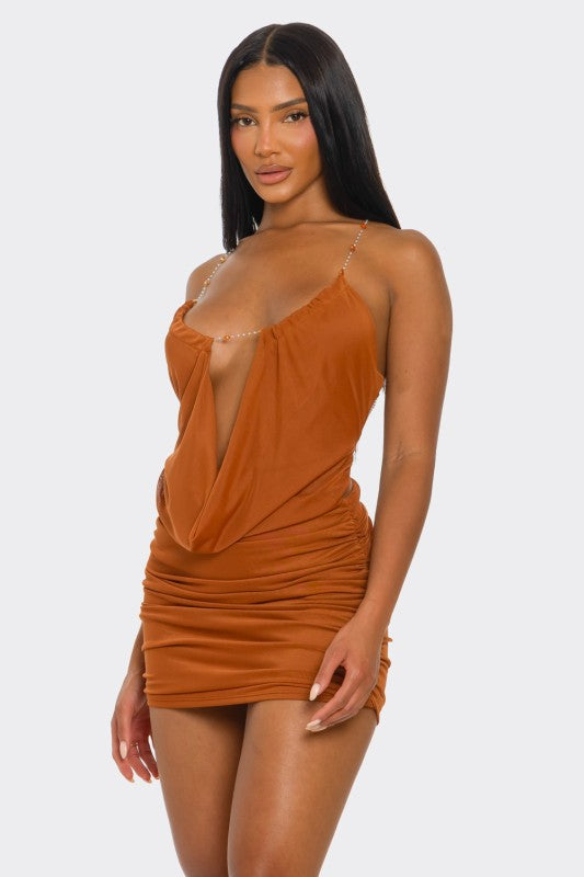 The Aria Pucker Mesh Cowl Mini Dress (Orange)