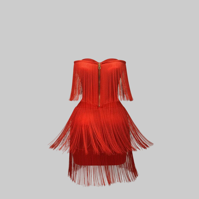 Velvet Night Tassel Mini Dress (Red)