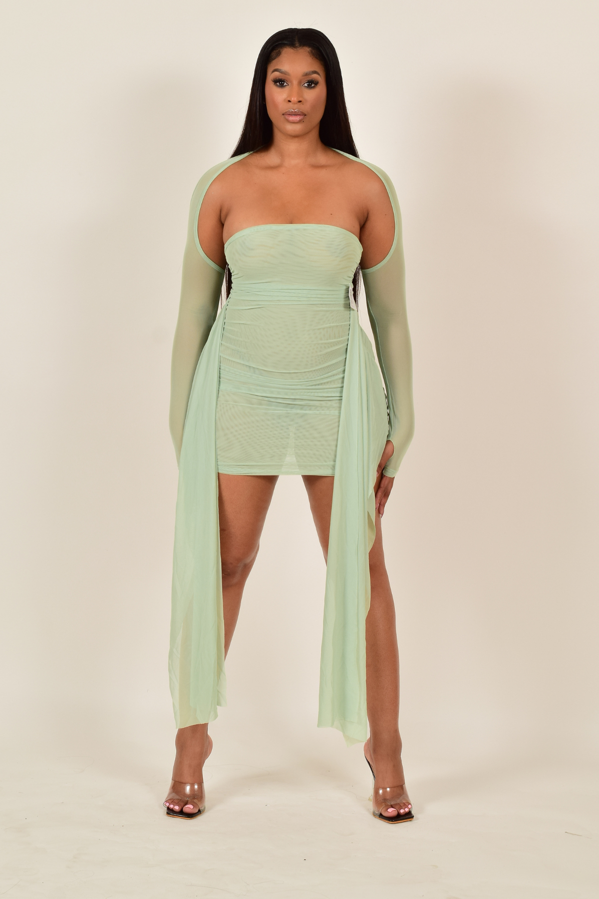 This captivating mini dress features a sheer mesh overlay with body-hugging ruching, long adjustable tie straps, and feminine pleated detailing. Side cutouts add a bold, sculpted edge, while the lined bodice ensures comfort and coverage. Perfect for birthdays, holidays, and after-hours slay, this dress delivers a glamorous, head-turning silhouette made for nights out.