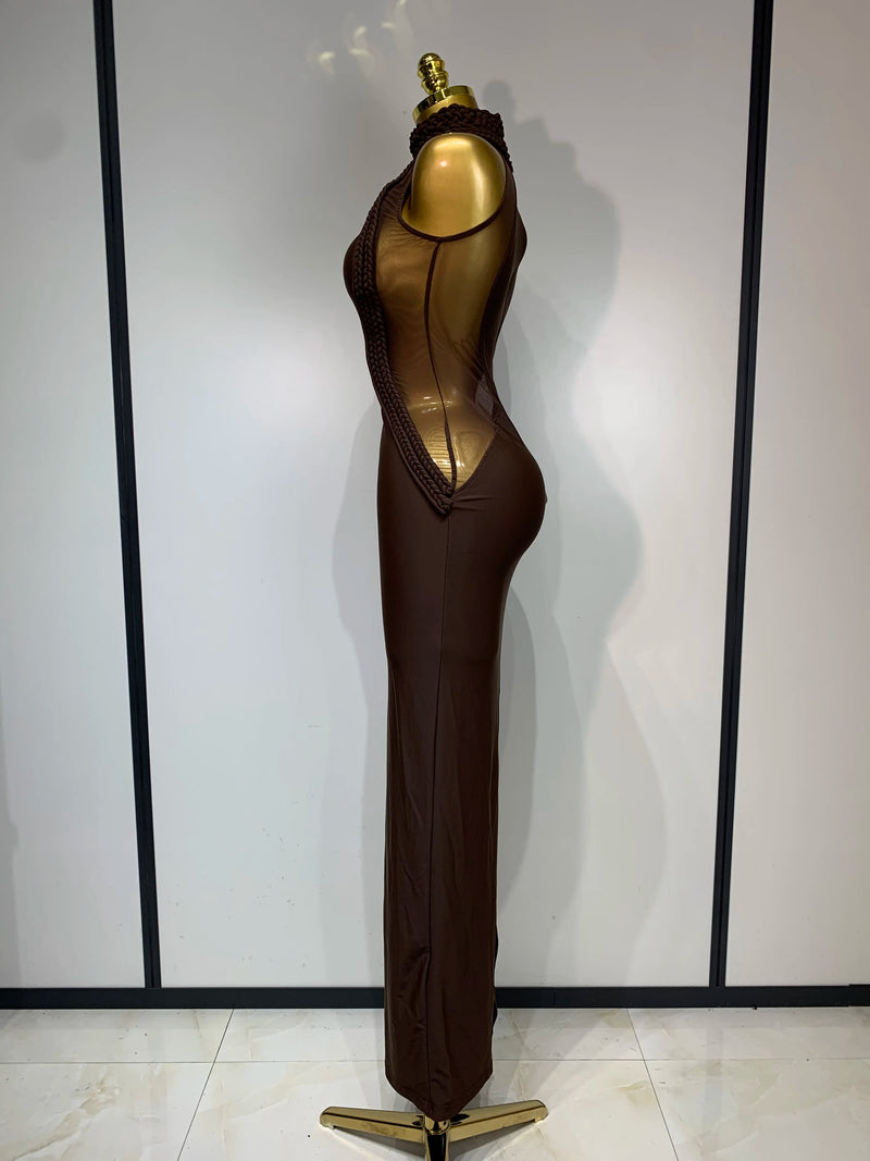 Brown Mesh Bodycon Dress