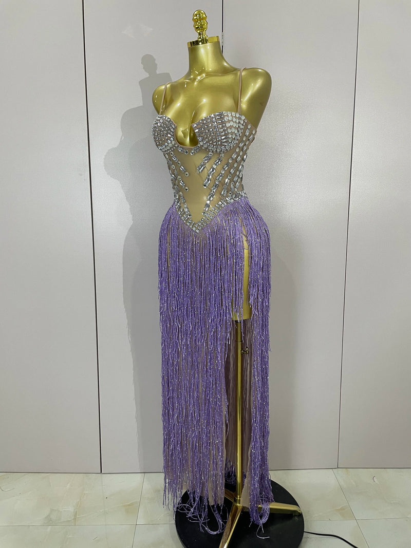 Crystal Fringe Illusion Gown