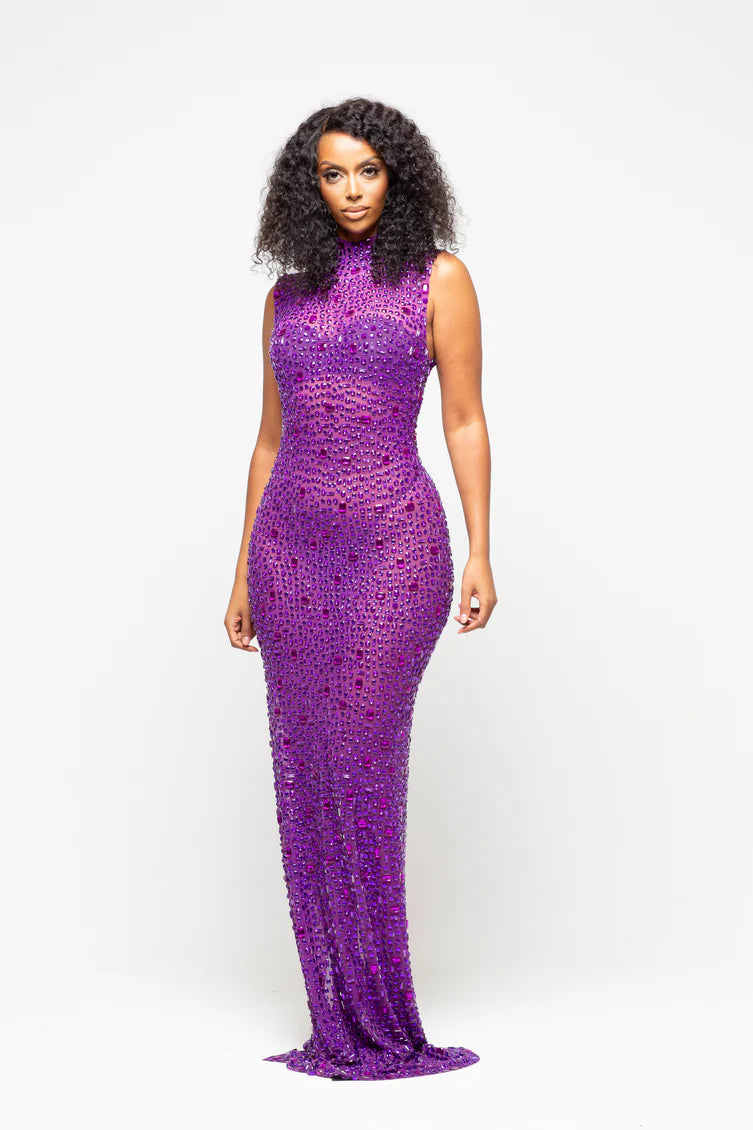 diamond grace nessa high neck gown floor length rhinestone diamond embellished elegant formal evening wedding party luxury stretchy