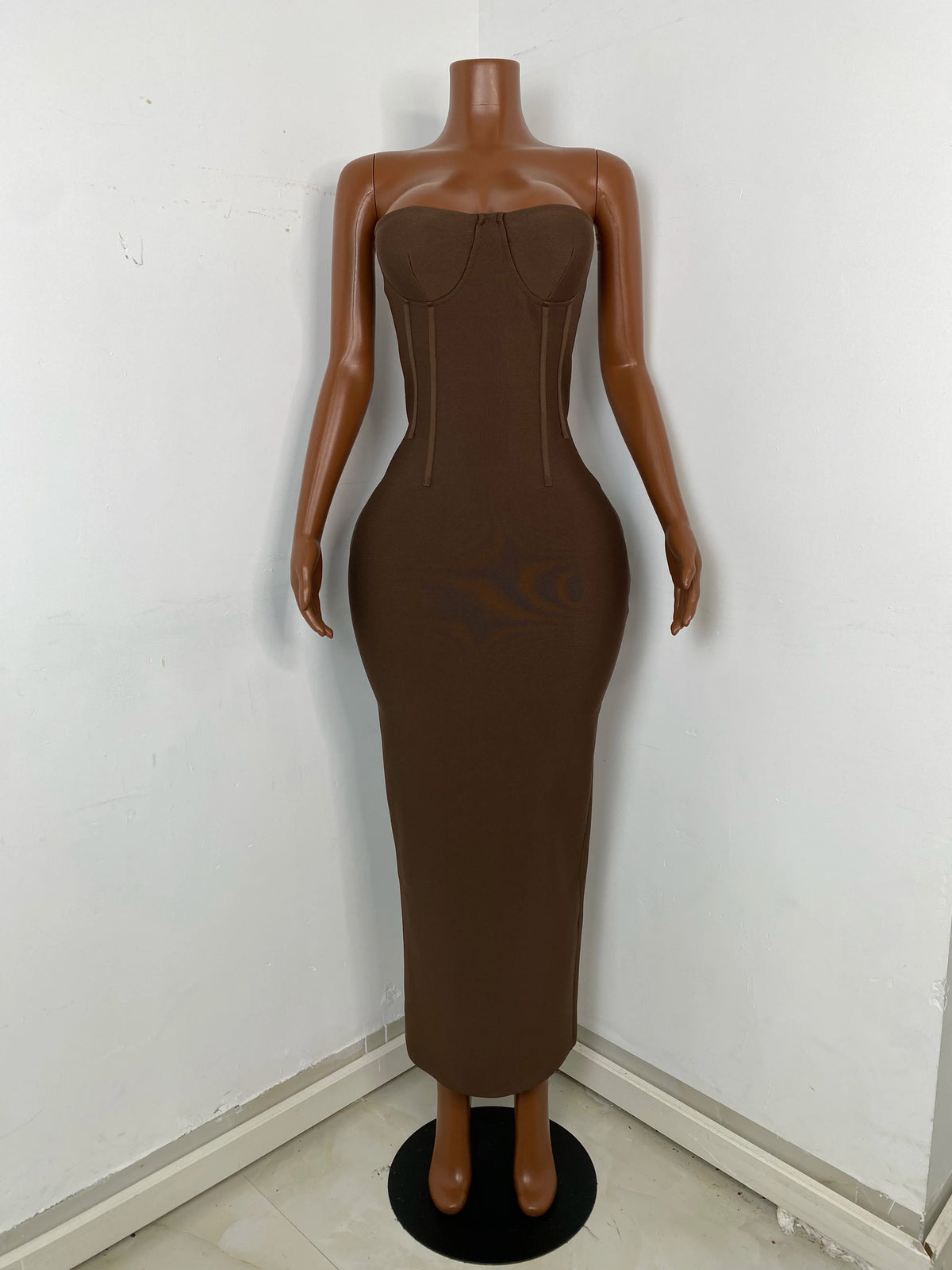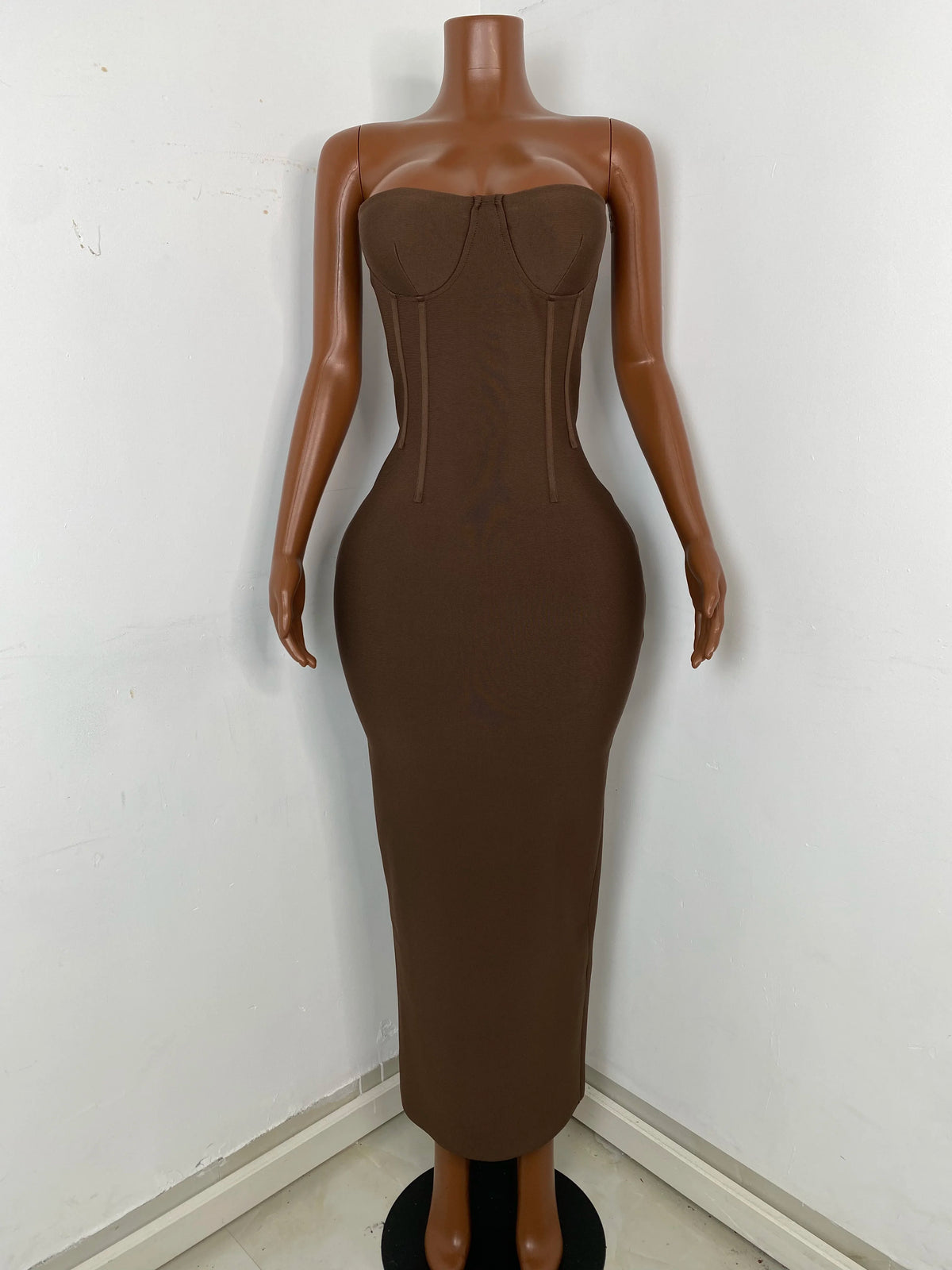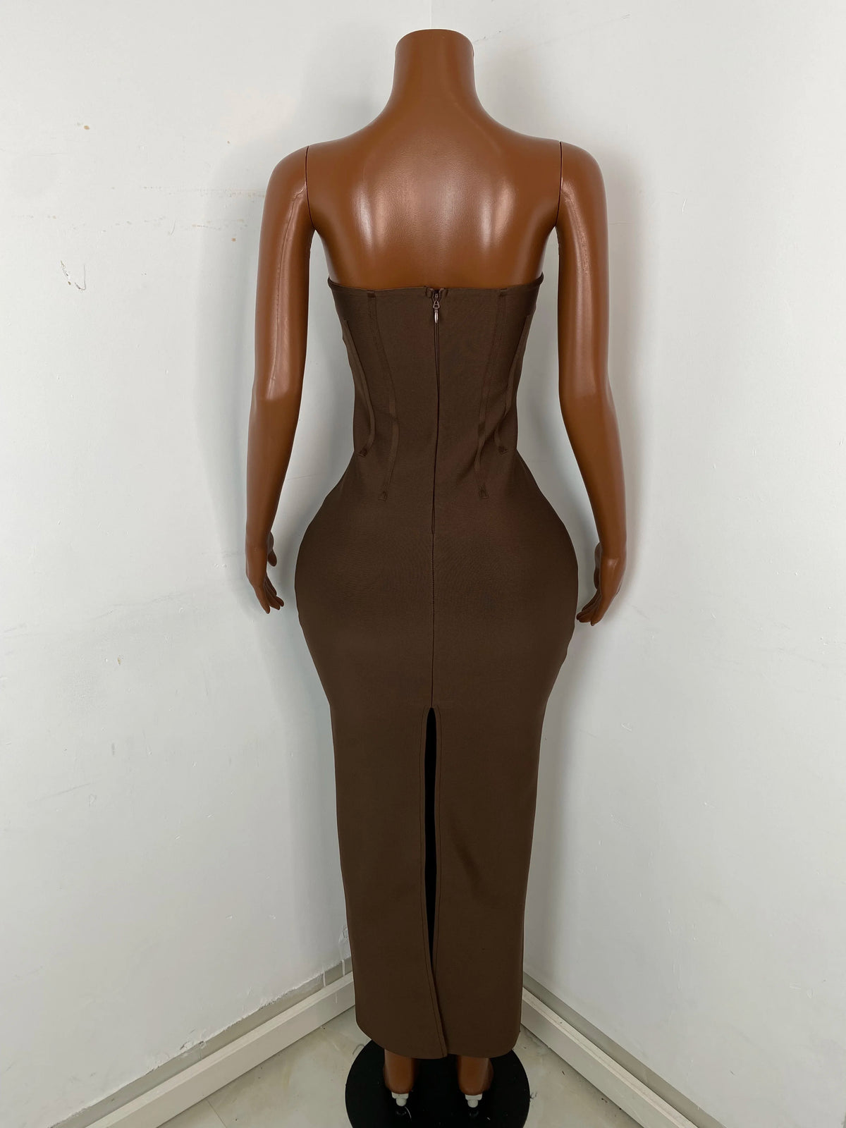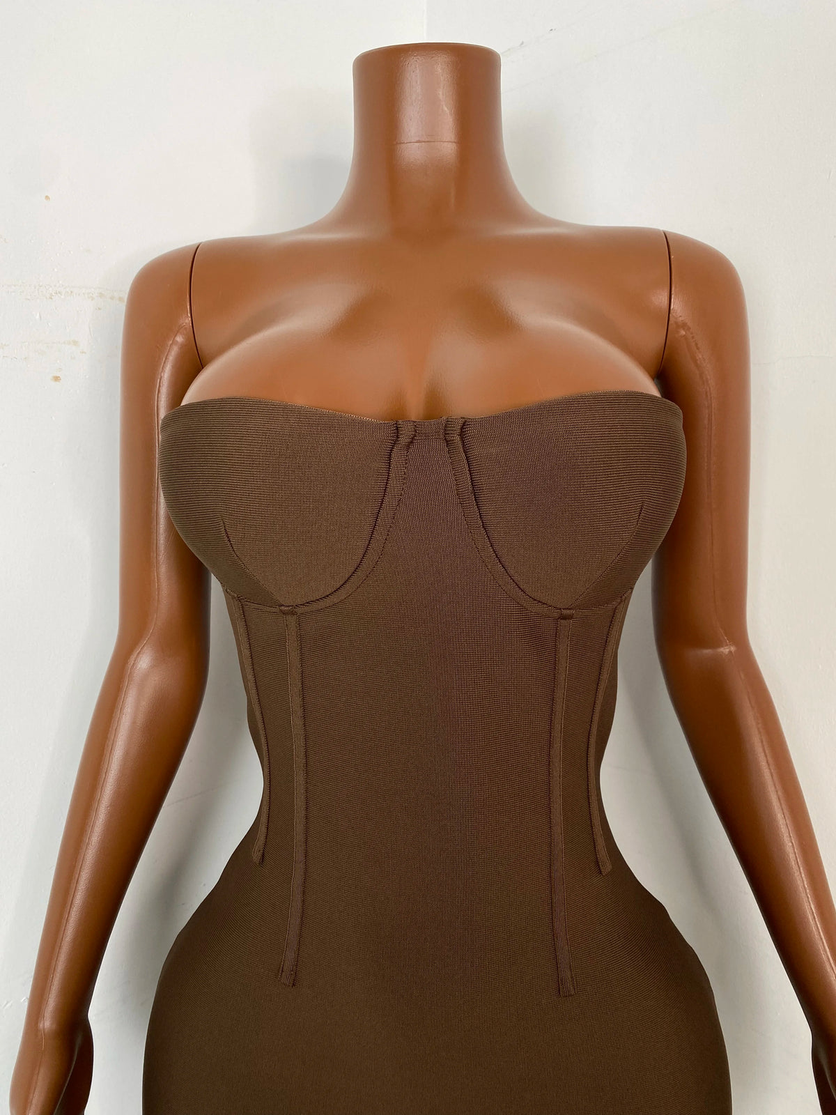 Effortless heat meets luxe sophistication — this strapless beauty was made to make an entrance. 🤎✨