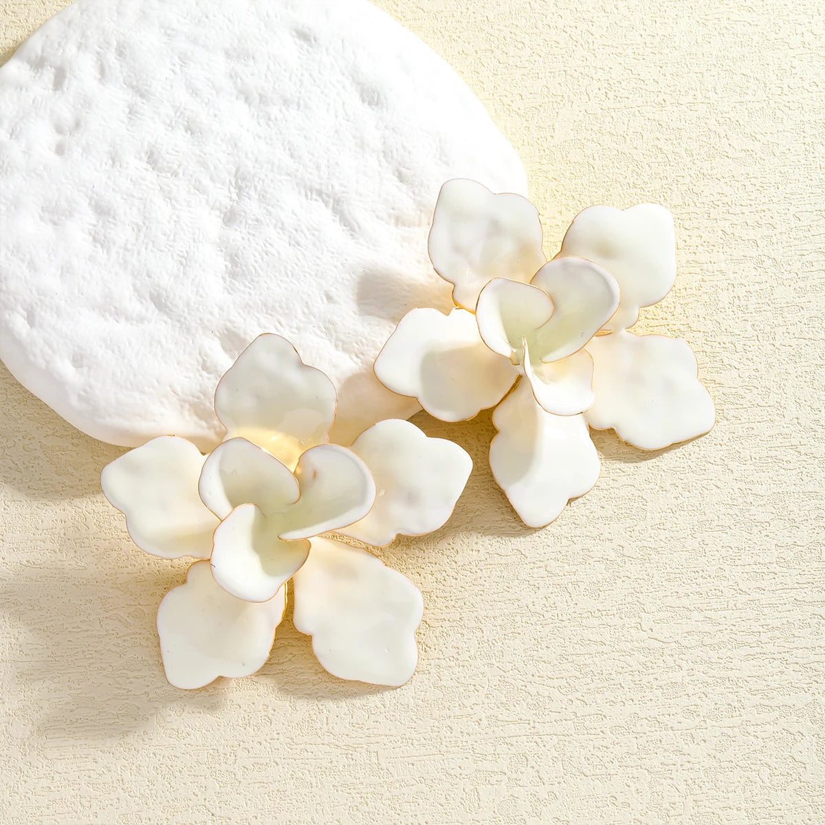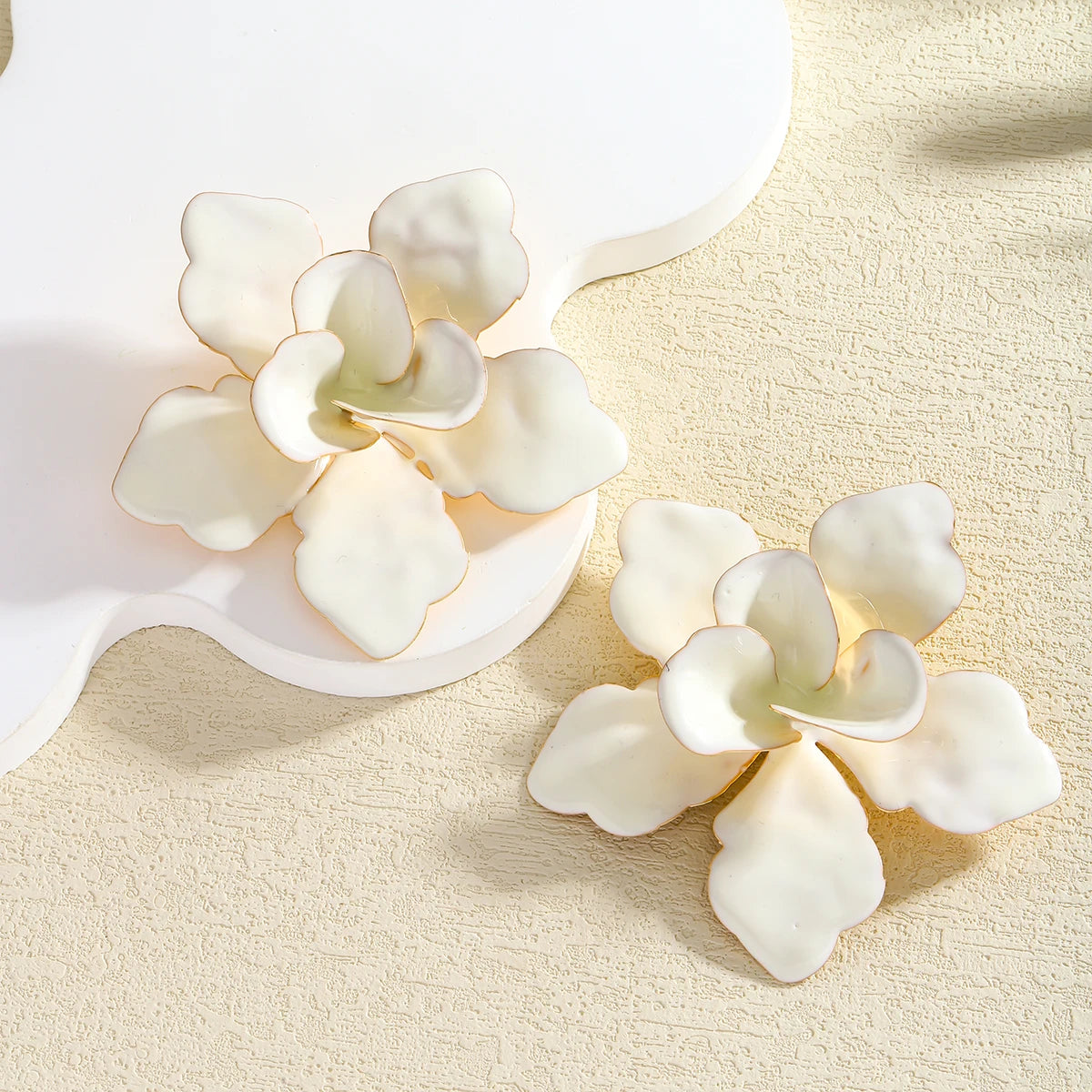 Make your look blossom with the Aurora Bloom Earrings 🌸 — bold, artistic, and effortlessly elegant. Designed with exaggerated floral petals coated in glossy enamel, these earrings bring high-fashion charm to any occasion — from weddings to beach getaways.