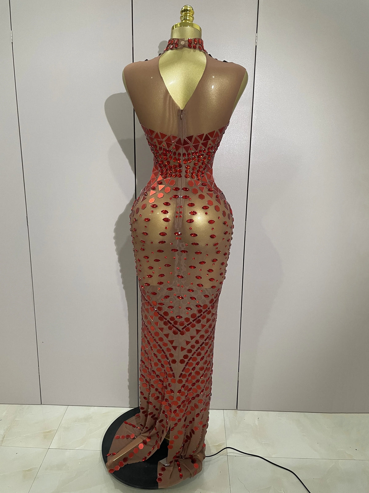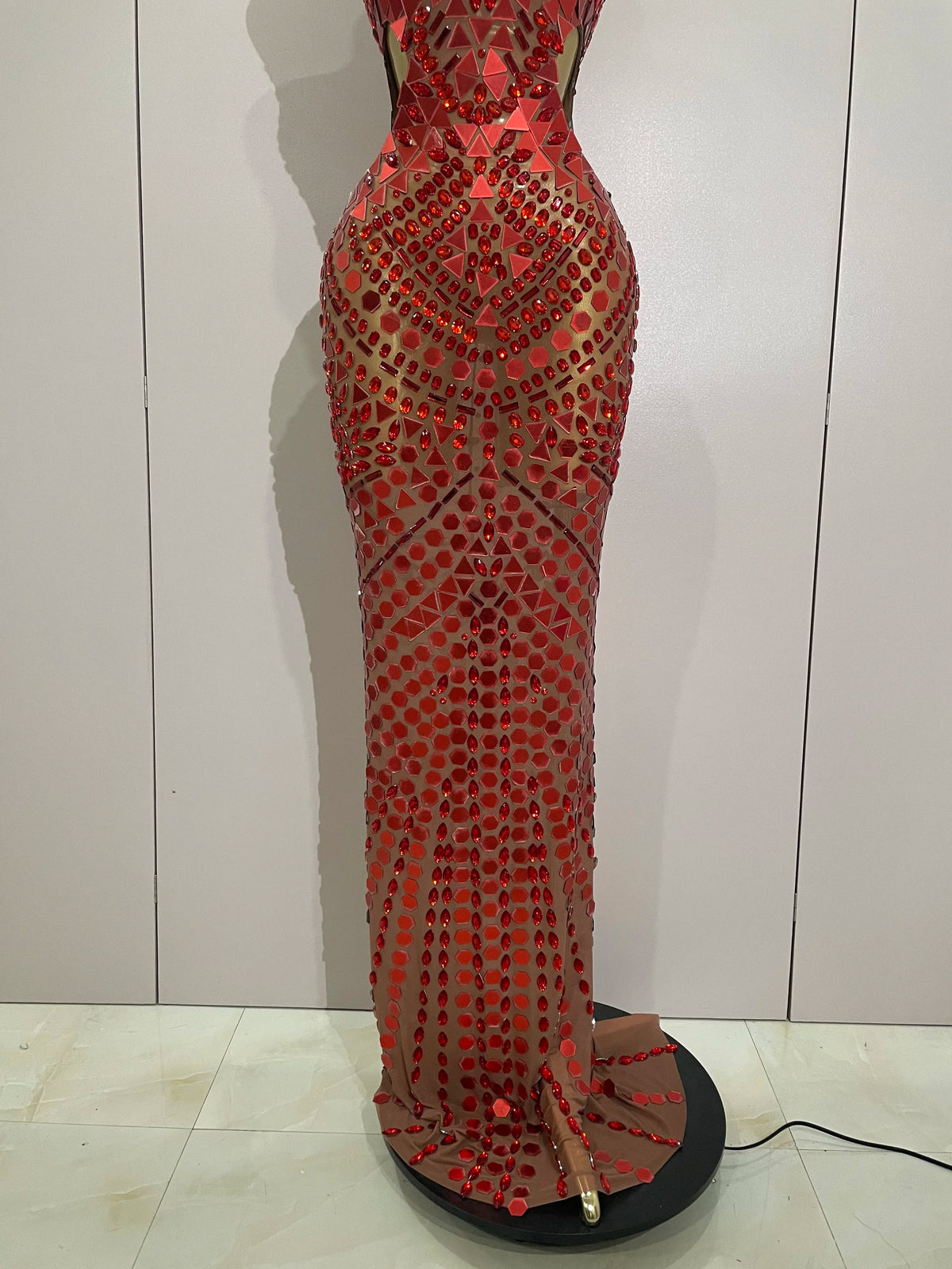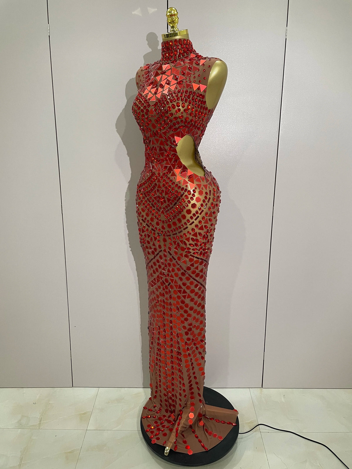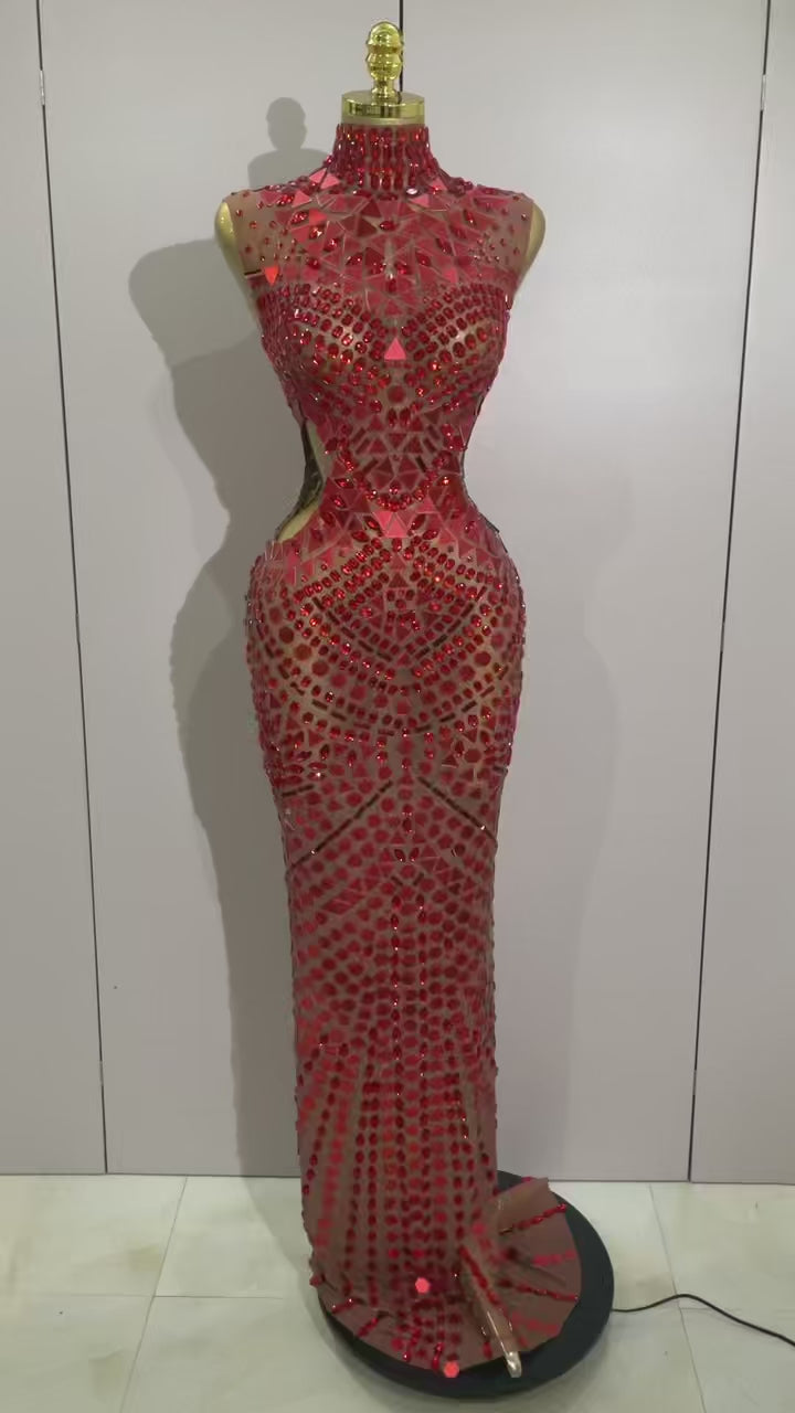 This show-stopping mirror rhinestone gown is pure celebrity energy. With its shimmering hollow out design and ultra glam fit, this piece was made for the spotlight perfect for stage moments, photoshoots, red carpets, or jaw dropping party entrances. If you came to shut it down, this is your dress.