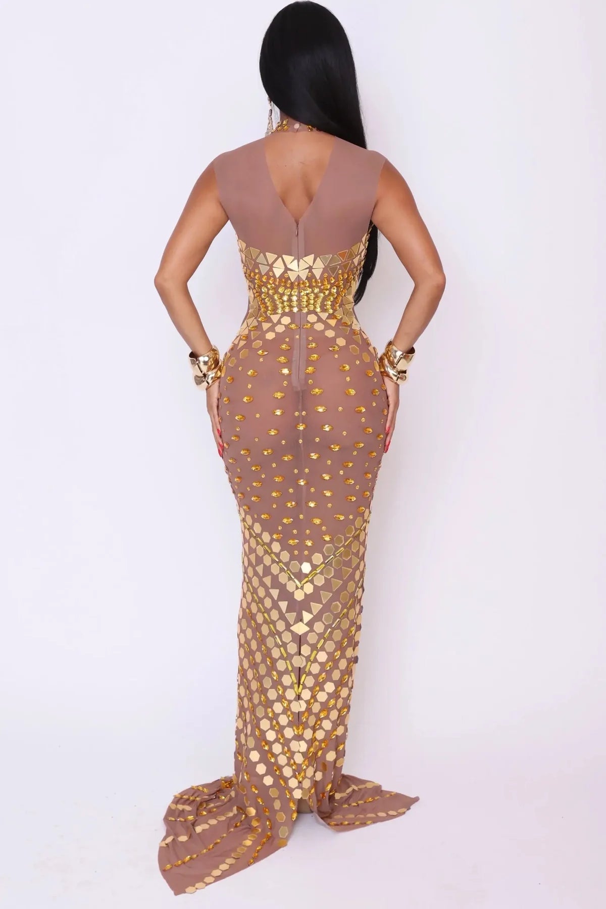 This show-stopping mirror rhinestone gown is pure celebrity energy. With its shimmering hollow out design and ultra glam fit, this piece was made for the spotlight perfect for stage moments, photoshoots, red carpets, or jaw dropping party entrances. If you came to shut it down, this is your dress.