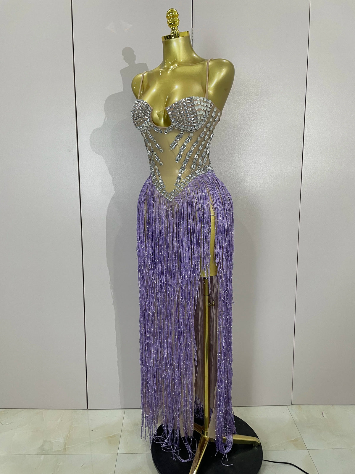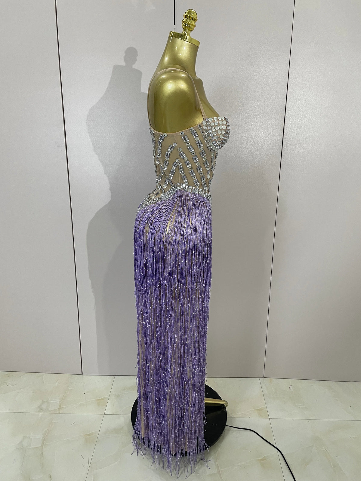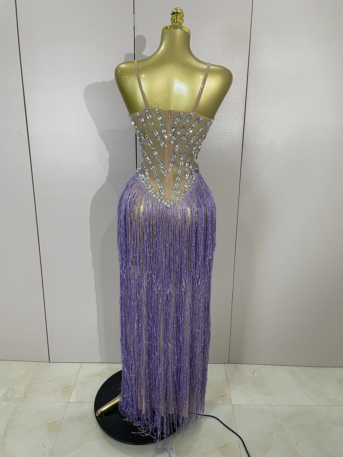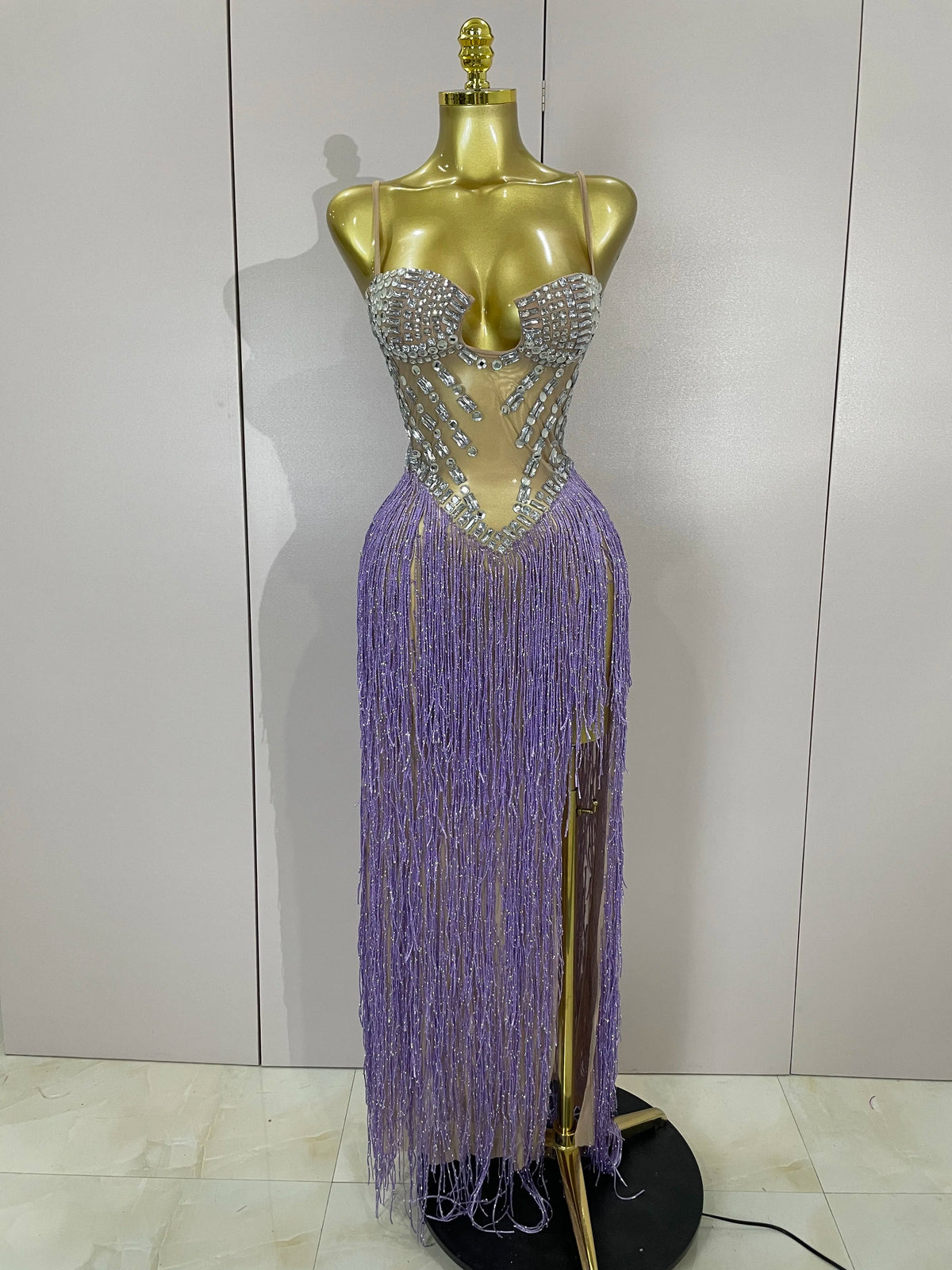 Sheer shimmer and tassel motion—made for main-stage moments.
