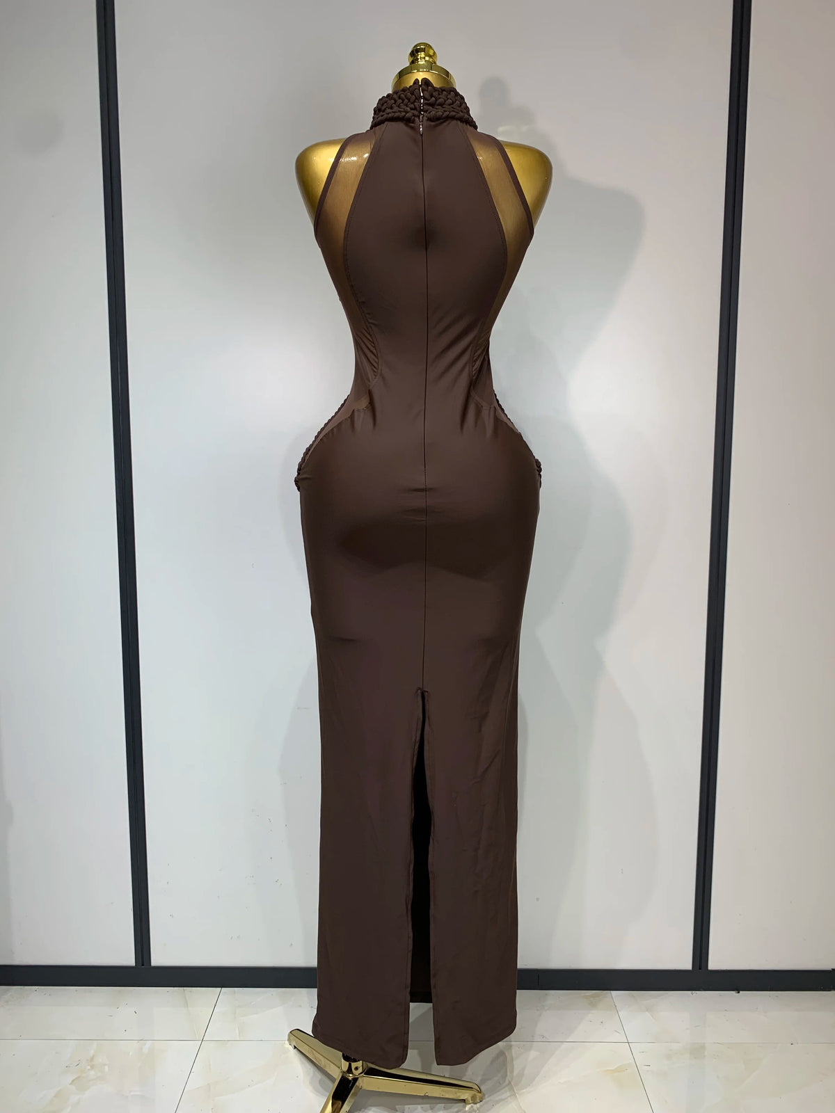 Sheer mesh detailing with a luxurious bodycon silhouette