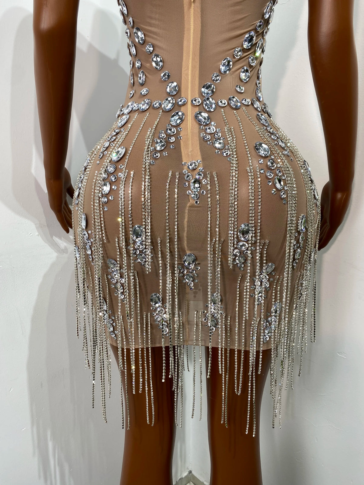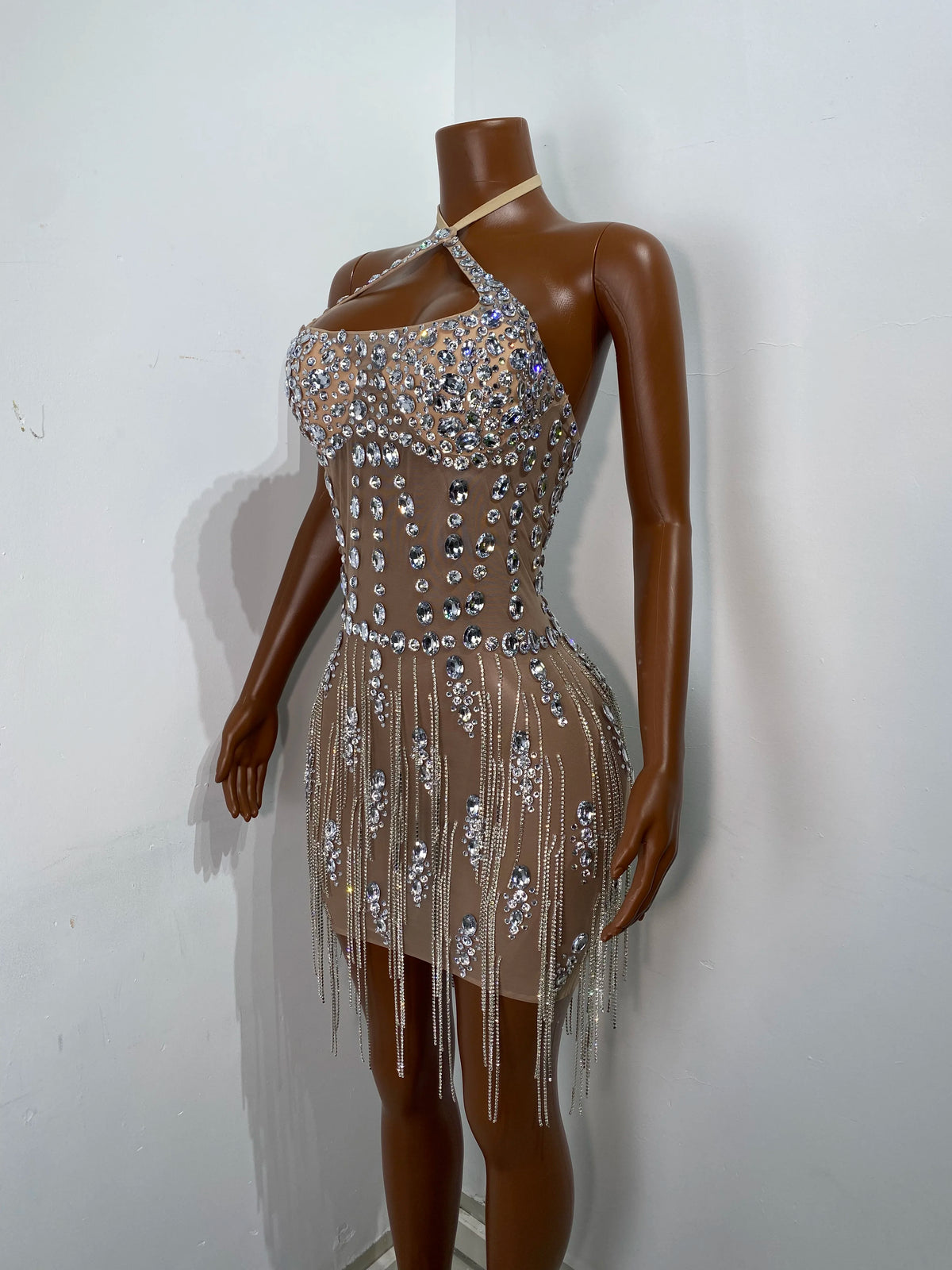 Radiate pure star power in this crystal-covered halter mini. Made for birthdays, club nights, and center-stage moments where every sparkle counts.